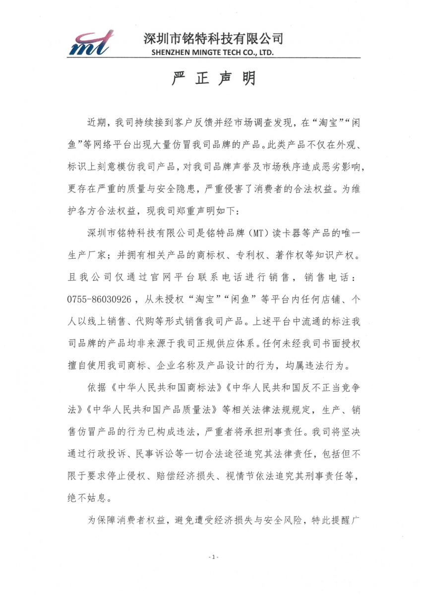 - 铭特科技非接触式读卡器MT62X取得CE认证2019-06-12